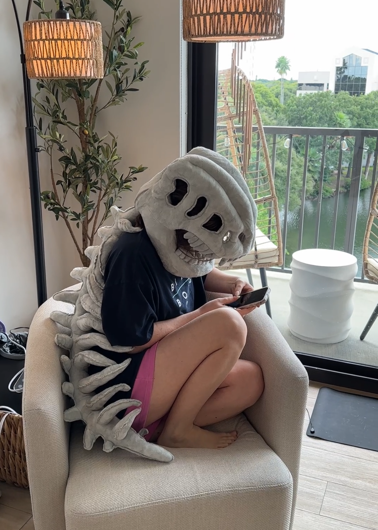 Wrapped in soft, plush bones and a dash of chaos, this look turns any lazy day into a dino-level chill session. Whether you’re scrolling, gaming, or just existing, comfort has officially evolved.
